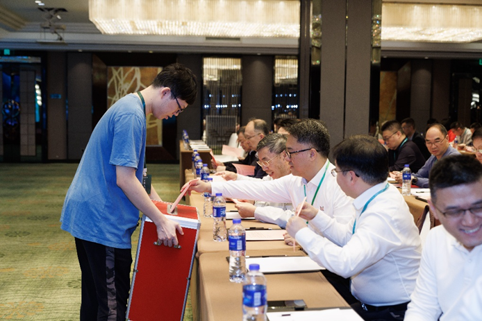 会员代表大会尾声,广东省科协学术部郭庭茂同志致辞。他对大会的顺利召开及新一届学会领导机构的产生表示热烈祝贺,充分肯定了广东省数学会在促进学科发展、服务地方创新等方面发挥的积极作用,并对学会未来工作提出殷切期望,勉励学会进一步发挥桥梁纽带作用,为广东高质量发展贡献更多数学智慧与力量。